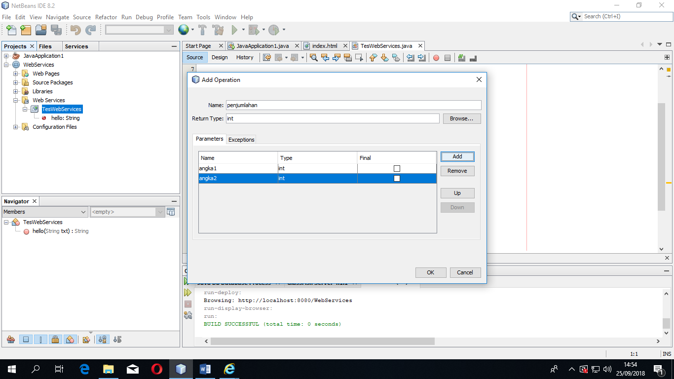 Misal nama webservicesnya: TesWebServices || Package: ws