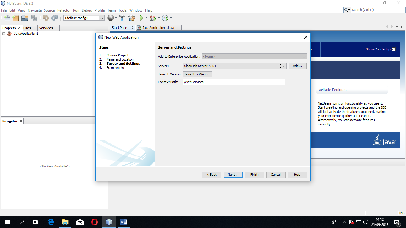 - Pada gambar diatas, pilih server: GlassFish Server 4.1.1 lalu klik Next maka akan tampil sebagai berikut